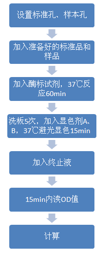 本试剂盒采用双抗体夹心法测定样本中待测物的水平。用已知浓度的待测物质的标准品和未知浓度的样品依次先后加入微孔板,先将待测物质和生物素标记的抗体同时温育。洗涤后,再与亲和素标记过的HRP结合,再经过彻底洗涤后,加入底物A、B,底物在HRP酶的催化下产生颜色。颜色的深浅和样品中待测物质的浓度呈比例关系。用酶标仪在450nm波长下测定吸光度(OD值),通过标准曲线计算样品中待测物质的含量。